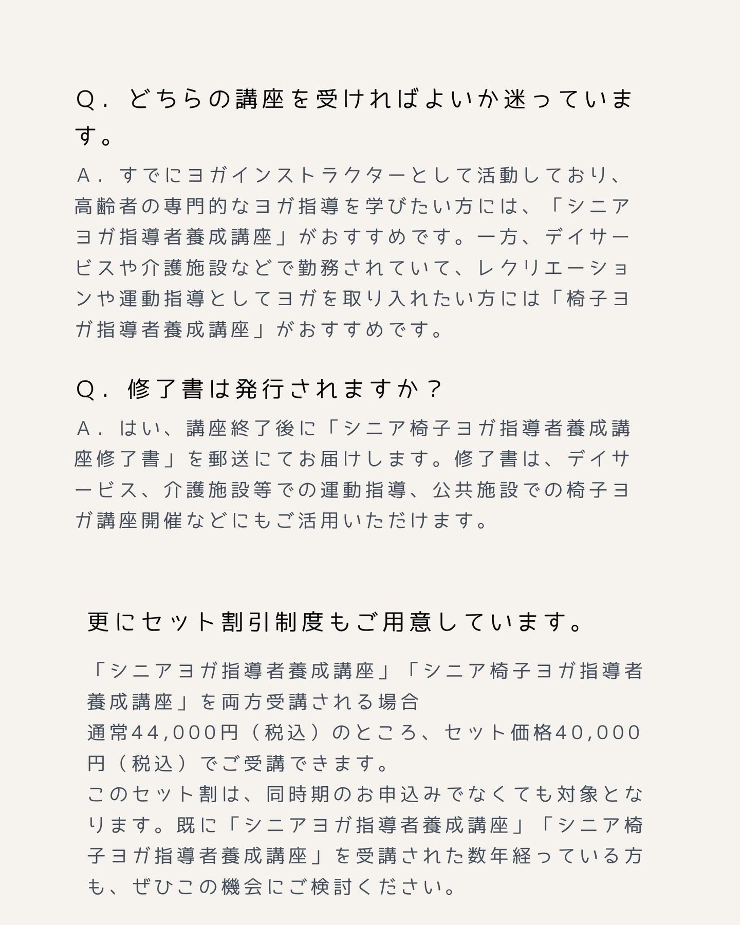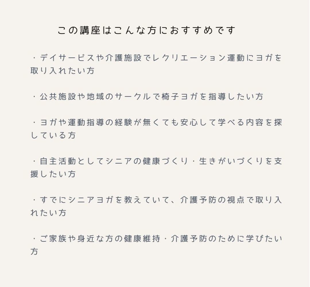 | パーソナル シニアイスヨガ指導者養成講座 |